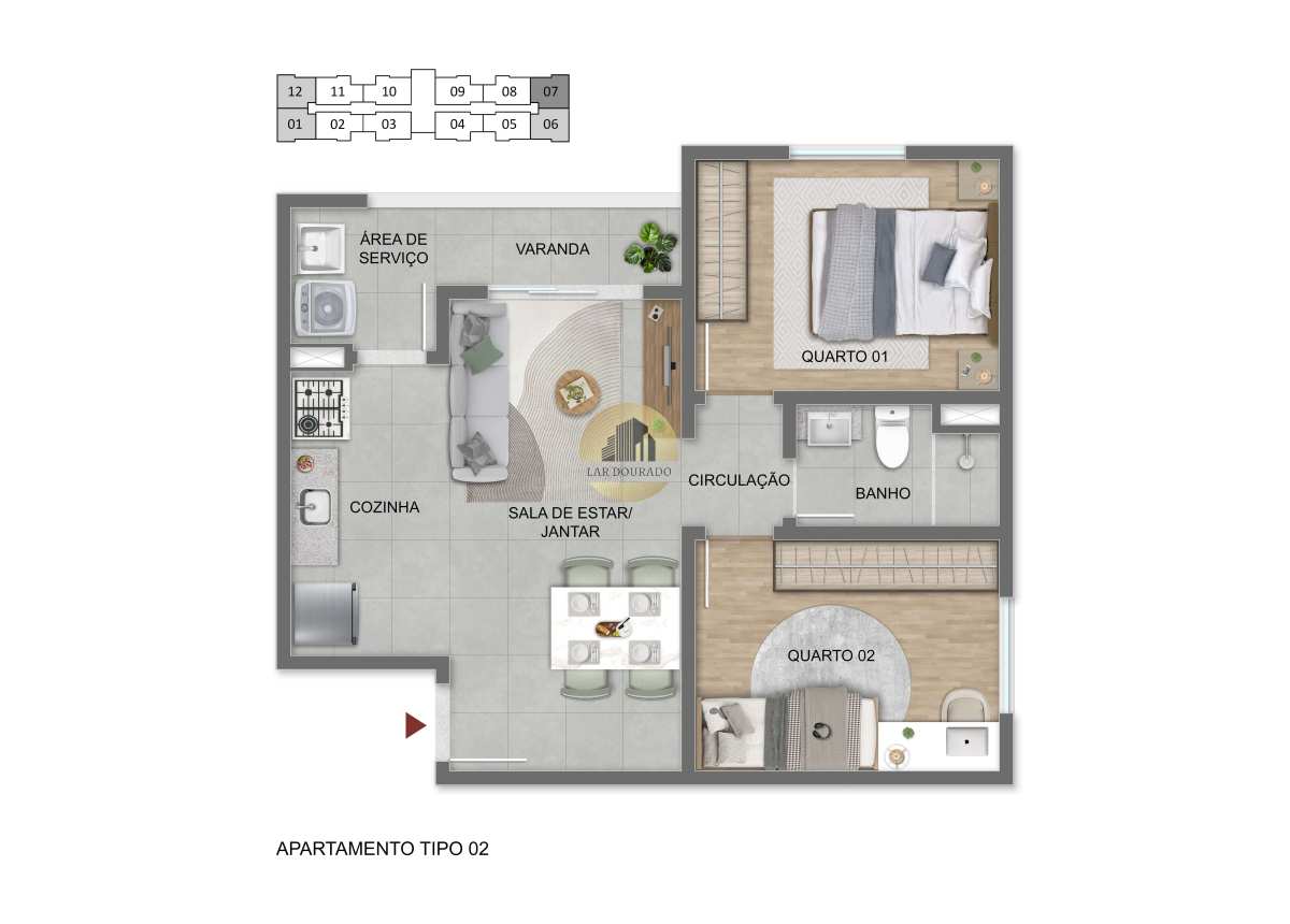 Os apartamentos na planta em Sorocaba do Sou Viver Sorocaba possuem 44m² e 45m², com plantas inteligentes e funcionais, que garantem melhor aproveitamento dos espaços, conforto no dia a dia e ambientes bem distribuídos para diferentes estilos de vida.